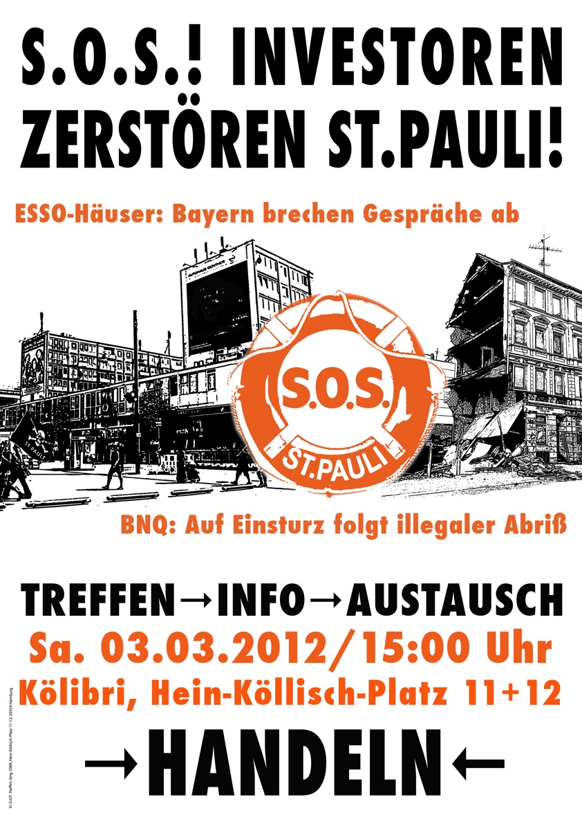 Kontakt: 0176-49447530 SOS St. Pauli < http://www.sos-stpauli.de/>